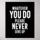 Whatever You Do Please Never Give Up - Motivational Message. A gift perfect for anyone who needs some inspiration/motivation in life. Gift for mother, father, sister, brother, aunt, uncle, grandma, grandpa and friends. Motivational quote, positive and encouraging slogan gift.