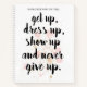Never Give Up Typography - A beautiful motivational planner with a background of soft aquarelle paint in elegant shades of pink and beige. The message:" No matter how you feel - get up, dress up, show up and never give up." Wake up be inspired, seize the day with this sensational note book. Never miss your important events and keep smiling with this heart felt message.