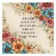 Transform your space with inspiration. Our 'Never Give Up' photo print captures the essence of resilience and determination.
