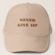 Never Give Up Text name Khaki and Khaki colour Trucker Hat or Cap.