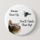 Never Give Up, Youll Catch that Fly Button inspirational magnet with funny kitten and fly.
