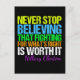 Never stop believing that fighting for what's right is worth it. A motivational Hillary Clinton quote to the resist movement perfect for protest marches and demonstrations. Remind the resistance to protest and fight for equal rights for all citizens, women's equality, universal healthcare, LGBTQ rights, and all other values we hold dear in America.