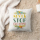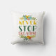 Pretty throw pillow features Never Stop Dreaming typography quote with top and bottom floral sprays
