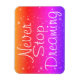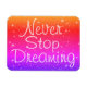 A colourful, positive affirmation to keep you focused on your goals. ‘Never stop dreaming’ is written in a handwriting-style font with a colourful, star background.
