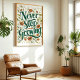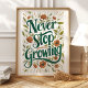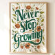 Never Stop Growing: Floral Inspirational Art Poster