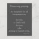 Never stop praying. Be thankful in all circumstances, for this is God's will for you who belong to Christ Jesus. (1 Thessalonians 5:17-18)
