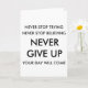 NEVER STOP TRYING NEVER STOP BELIEVING MOTIVATE CARD