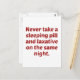 Never Take A Sleeping Pill And Laxative On The Sam Postcard