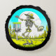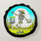 Never Too Old to Disc Golf | Skeleton Throwing Round Cushion