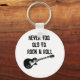 Rock music is timeless whether you're young or old. This key chain features a classic guitar with worn out text. The message is simple; never let your age restrain you from the love of rock music.