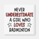 Never underestimate a girl who loves badminton. For the girl or lady who loves playing badminton - for adults, children & teenagers. Funny gift for Christmas, birthdays, Mother's day, for yourself, “just because"