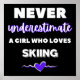 Never underestimate a girl who loves skiing. For the girl or lady who loves skiing. Great gift for Christmas, birthdays, Mother’s day, "just because" or for yourself.