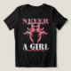 At the lower section of the design, the phrase “A GIRL” is prominently showcased in the same bold, grunge style as “NEVER,” reinforcing the empowering sentiment. Beneath this, the phrase “With A Black Belt” is elegantly portrayed in pink Spliced-style fonts, completing the design. Great Martial Arts gift for young martial artists, sports enthusiasts, or anyone looking to celebrate their strength and dedication like girl or woman you know that has a Black Belt in Karate, Jiu Jitsu or Taekwondo. Perfect for strong women like your sister, aunt, wife, daughter, girlfriend, mom or partner. Whether worn during training or as casual attire, it serves as a proud declaration of female empowerment in the world of martial arts.