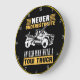 This bold wall clock is a tribute to the seasoned tow truck operator. Featuring a distressed white tow truck against a black background with a yellow rim, it powerfully states: "NEVER UNDERESTIMATE AN OLD MAN WITH A TOW TRUCK". This design celebrates experience and capability, making it an ideal gift for any veteran in the towing profession. The design tool can also be used to add custom text if you want your name or company on this clock. You can customise the colour of the frame to any colour you desire by going into the design tool.