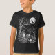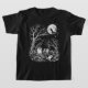 This black and white design evokes classic horror stories featuring ravens sitting on gravestones in a cemetery overlooked by dead gnarled trees.