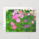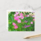 New Address announcement on a postcard. Beautiful pink flowers in a garden. Add your own message on the back of the postcard.