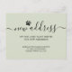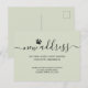 This modern green dog moving announcement postcard is decorated with stylish calligraphy and a dog paw.