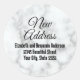 This white marble look change of address sticker can be personalized with your desired text. New Address appears in a cursive script above additional text that can be changed to your name and new address.