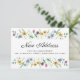 This small botanical New Address announcement card is decorated with delicate watercolor flowers and foliage in pastel shades and stylish script typography.