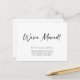 New Address Modern Calligraphy Simple Black and White Moving Announcement Postcard... Modern calligraphy script displays your message "We've Moved!" Your name and new address are displayed just below this announcement. The back of our minimalist change of address card contains all of the updated details your family and friends will need to stay in touch. The example text on front and back (except for the graphic "We've Moved!") can be easily revised on the personalisation template.