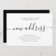 Simple elegant minimalist black and white new address handwriting calligraphy script moving announcement card. +++++++++ Easy to personalise with your new home address.