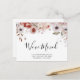 New Address Moody Floral Fall Colours Moving Announcement Postcard... Modern script typography displays your message "We've Moved" under a delicate floral border in moody fall colours centred on blush pink and marsala hues. The back of our floral change of address card contains all of the updated details your family and friends will need to stay in touch. The example text on front and back can be easily revised on the personalisation template.