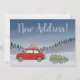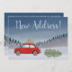 New Address Red retro Fiat 500 with Christmas tree Watercolor hand drawn