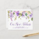 Announce your new home to family and friends with this modern floral botanical design of modern script and purple flowers.