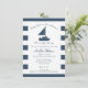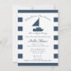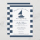 Set sail on a new adventure to welcome baby with our navy blue sail boat and nautical stripes elegant and classic baby shower invitation for mummy and daddy to be. Personalise as preferred.