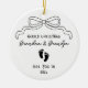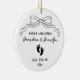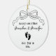 Celebrate the joy of new beginnings with our personalised Christmas ornament featuring adorable baby footprints. This charming keepsake is perfect for announcing a new baby to Grandma and Grandpa, making it a heartfelt addition to their holiday decor. Adorned with a hand-drawn heart and a coquette ribbon bow. A unique ornament that will be treasured for years to come.