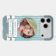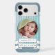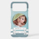 New Baby Boy Photo iPhone Case For Mum or Grandma - Baby's Photo and Baby Stats Aqua Blue Steel Blue Stripes Ticker Tape Banners with Baby's Stats