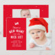 There's a new name on the nice list. This adorable baby's first Christmas holiday birth announcement features a cute type treatment on a red background along with a vertical photo on the front. The back of this Christmas card features a second photo and room for a custom message on a red background. Celebrate and introduce your new baby with this sweet design and send holiday greetings to friends and family. This original holiday photo card by Lea Delaveris Design is available as a digital download and in a variety of colours and styles in the collection.