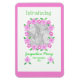 A special way to announce the arrival of your New Baby Girl, with a fully customisable, Photo Upload flexible Fridge Magnet. Your baby photo will be surrounded by a border of pink flowers, from a handpainted paper collage design by Judy Adamson. Your nearest and dearest will be proud to display this lovely memento of the new arrival!