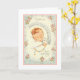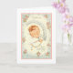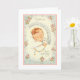 This is a beautiful Catholic new baby card for a baby girl. Darling vintage image of a little baby holding the Rosary. All text and fonts may be modified.