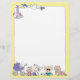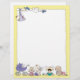 This letterhead features several babies and a stroller at the bottom, a stork delivering a baby in the top left corner and a yellow border.