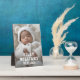 Photo plaque with the baby's name and birth date as a white overlay over your custom photo.