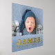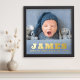 Photo poster with your baby's name, date of birth, weight and length in bold gold or silver foil letters.