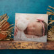 Modern baby photo plaque for a girl or boy baby keepsake. Simply use this template to add your own custom photo of your own sweet baby and personalise with baby's name and birth stats in this elegant trendy script typography.