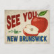 A charming New Brunswick New Jersey vintage travel postcard featuring a lovely red apple, along with fun retro style text that says, "See you in New Brunswick"