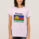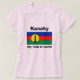 On the front of this shirt an editable title and slogan accompanies the New Caledonian flag with its black motif in a yellow circle over blue, red and green. The back displays a detailed map of New Caledonia.