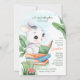 A charming baby shower invitation featuring a white bunny sitting on a stack of books reading in the garden. (Image by Freepik). The card is easy to customise with your wording, font and font colour. Not exactly what you're looking for? All our products can be custom designed to meet your needs at no extra charge. Simply contact us at askcottonlamb@gmail.com. Coordinating products available at your request at no additional charge.