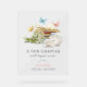 This elegant "a new chapter will begin soon" bridal shower welcome acrylic sign features a cream background with a piles of books, butterflies, a flower bouquet, teapot and teacup in watercolor. Personalise it for your needs. You can find matching products at my store.