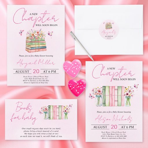 A New Chapter Begins books pink girl baby showerDesigned by Modern Designs