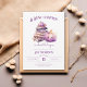 Featuring lavender pumpkins, magical books, autumn leaves, and whimsical lilac tones, this design is perfect for a fall baby shower with a touch of Halloween charm.