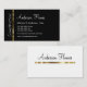 Newly created classy home builder and construction business card template including elegant gold coloured design elements digitally printed on the background to add a touch of class along with fancy script typographic name lettering. Designed for a builder, contractor, or residential home building.