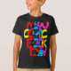 The t-shirt feels and looks great quality, a good thick cotton. It will be a little big for my son, but that means he will be able to wear it and not out grow it too soon. The print was as described on the order when personalised. True size, shape and colour T-shirt- thanks.