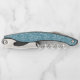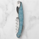 This corkscrew is shown in a blue with swirls print on both sides.