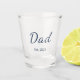 New Dad shot glass with a minimalist and classic design. With navy blue customisable lettering, you can add your own text. A simple gift for a new father or for celebrating Father's Day.