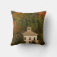 This artistic throw pillow features a lovely fall scene. A little white New England house with a cupola is nestled at the foot of a hill which displays glorious autumn foliage with trees and leaves in colours of red, orange, yellow, gold and green.