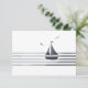 Set sail for your special day with this wedding details card, featuring an elegant illustration of a sailboat adorned with nautical stripes and accompanied by graceful seagulls. Embracing a bluish-grey colour palette reminiscent of New England coastal charm, this card provides essential wedding information with a touch of maritime elegance.